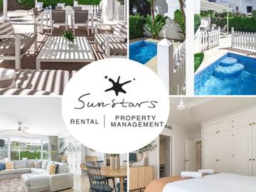 Belle maison jumelée, très spacieuse, avec 4 chambres, grande terrasse et solarium. Il est situé à 2 minutes à pied de la plage, dans une urbanisation avec 2 piscines, de beaux jardins et une sécurité 24h/24. A quelques mètres de San Pedro de Alcántara et de sa grande promenade, où se trouvent une grande variété de bars de plage et de bars. Entouré de terrains de golf. Au premier étage, nous trouvons la pièce principale, avec un lit double en 180, une salle de bain en suite et un balcon. Une autre chambre avec un lit double de 180 et la troisième chambre a 2 lits de 90 avec accès à une grande terrasse. Au rez-de-chaussée se trouve la cuisine entièrement équipée, une chambre de service avec 2 lits de 90 et une salle de bain attenante. Ainsi qu'un grand salon avec salle à manger et accès direct à la terrasse privative. Maison entièrement équipée avec Smart TV, wifi, climatisation, une sélection de livres et de jeux à votre disposition. Lit bébé et chaise haute à disposition, il suffit de nous le signaler pour les installer. Installations intérieures pour non-fumeurs. Excellent emplacement pour des vacances en famille ou des escapades de golf....