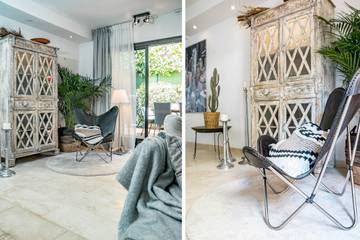 Une villa magnifiquement rénovée dans la zone côtière recherchée de San Pedro de Alcántara, cette propriété offre un confort moderne à quelques instants de la plage et du centre-ville animé. Parfaitement située entre le charme de Marbella et l'énergie de Puerto Banús, les invités peuvent profiter d'un accès facile aux promenades en bord de mer, aux restaurants locaux, aux boutiques et à l'atmosphère détendue qui caractérise cette partie de la Costa del Sol. Tout ce dont vous avez besoin se trouve à quelques pas ou à une courte course de taxi. Une maison unique au style contemporain et à l'ambiance chaleureuse et accueillante, la villa a été récemment meublée et décorée avec soin. Des intérieurs frais, des finitions de qualité et des détails de design élégants valorisent la maison tout en la gardant pratique et accueillante pour les familles et les groupes. L'espace de vie et de salle à manger ouvert est lumineux et aéré, avec de grandes fenêtres qui inondent l'espace de lumière naturelle. Des portes doubles relient cet espace au jardin et à la piscine, créant un flux intérieur-extérieur parfait pour la vie méditerranéenne. La cuisine moderne est entièrement équipée avec une cuisson à induction et des appareils dernier cri, offrant tout ce dont on a besoin pour préparer des repas à la maison. L'une des caractéristiques remarquables de la villa est son espace extérieur privé. Le ...